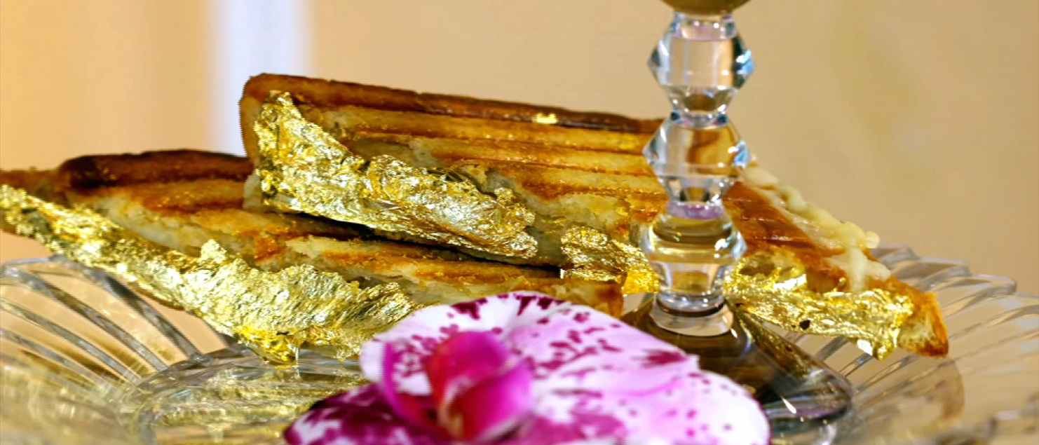 Le bar et restaurant Deca, de l’hôtel de luxe Ritz-Carlton de Chicago, est un des derniers en date à avoir proposé un sandwich à 100 dollars avec du « Zillion dollar grilled cheese », un fromage cheddar du Wisconsin de 40 ans incrusté de feuilles d’or 24 carats.  Un « Best-seller » selon le concierge.